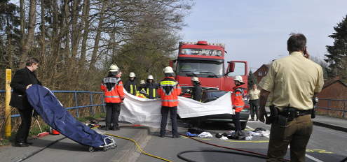 Für die Unfallaufnahme musste der Unfallort voll gesperrt werden. Die Sperrung dauerte bis cirka 17 Uhr an. Fotos: Bludau