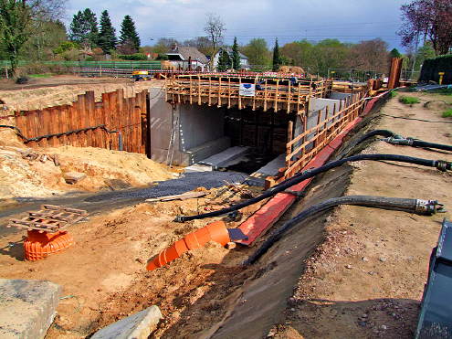 Jens Heintz von der ausführenden Firma Fritz Herzog AG in Andernach teilte mit, dass die Gleise ausgerissen und ein Erdaushub gemacht werde. „Dann werden an den beiden Baustellen Strandallee und Zu den Mühlen die Rahmenbauwerke, das sind quasi die fertigen Unterführungen eingeschoben und die Gleise wieder hergestellt. Danach folgen noch Restarbeiten.“