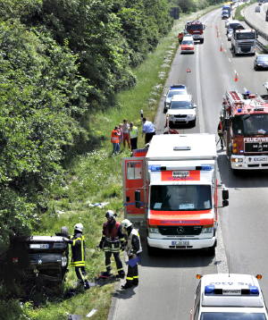 Dorsten. Am Mittwochmittag kam es auf der BAB 31 zu einem schweren Verkehrsunfall. Gegen 14 Uhr befuhr ein Pkw-Fahrer aus Velen (Kreis Borken) die Autobahn in Richtung Emden. Zwischen dem Rastplatz Holsterhausen und der Anschlussstelle Schermbeck verlor der Fahrer aus unbekannten Gründen die Kontrolle über seinen Wagen und kam nach rechts von der Fahrbahn ab. Hier überschlug sich der Pkw und landete auf dem Dach.