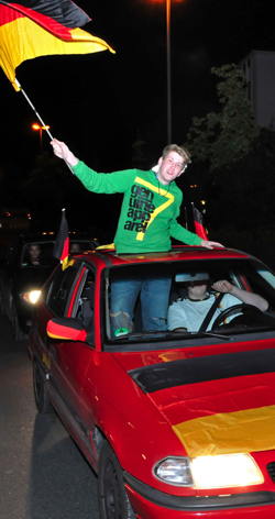 Insgesamt wurden in den verschiedenen Städten sechs Personen in Gewahrsam genommen und elf Platzverweise ausgesprochen. Bei den obligatorischen Autokorsos war das Verhalten der Verkehrsteilnehmer extremer als bislang. Mehrere Maßnahmen gegen Verkehrsteilnehmer wurden getroffen. Auch hier gilt weiterhin die dringende Aufforderung der Polizei, gefährliche Fahrmanöver, das Heraushalten von großen Fahnen oder das Herauslehnen aus Fahrzeugen zu unterlassen.
