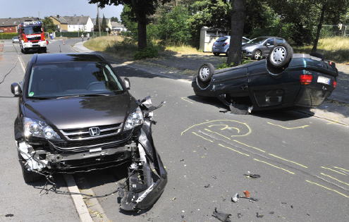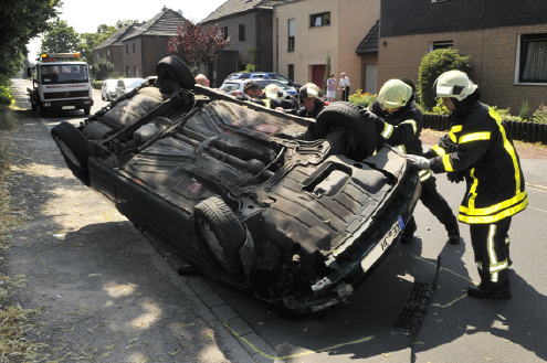 Unfall: Pkw landet auf dem Dach