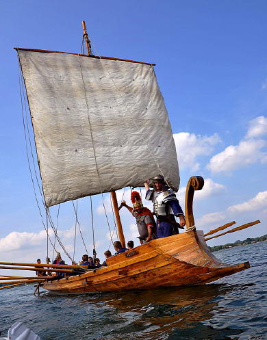 Bild: Ein Höhepunkt ist der Einsatz der „Victoria“ und eines weiteren römisches Flusskampfschiffes auf dem Halterner See. Foto: LWL/Anner