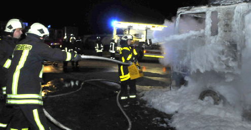 gedacht ein Lagerfeuer, sondern die vor einem Haus abgestellte Sattelzugmaschine. Gegen 22.15 Uhr wurde die Dorstener Feuerwehr mit den Löschzügen Hauptwache und Altendorf Ulfkotte alarmiert. Die Zugmaschine brannte trotz des schnellen Einsatzes der Wehrmänner komplett aus. Die Löscharbeiten zogen sich über eine Stunde hin. Auslaufender Kraftstoff musste zusätzlich von der Feuerwehr gebunden werden.