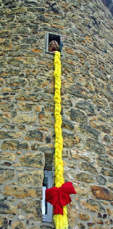 Recklinghausen. Lang und gelb hängt ein Zopf aus dem Fenster am Turm der Engelsburg. Was zunächst wie ein „Dummer-Jungen-Streich“ anmutet, hat einen tieferen Sinn: Es ist natürlich Rapunzels Zopf, der da aus dem Fenster hängt. Anlässlich des diesjährigen Herbstfestes (29. und 30. September) haben sich die Kunstschüler des Marie-Curie-Gymnasiums eines besonderen Themas angenommen: dem „urban knitting“. Es wurde gestrickt, was die Hände hergaben. Überall in der Stadt können die Ergebnisse bestaunt werden. Neben der Engelsburg ist das Denkmal „Bürger tragen unsere Stadt“, die Bänke am Wall, das Denkmal am Finanzamt, die Laternen an der Sparkasse und der Deutschen Bank, die Poller am Lohtor, am Petrinum und an der VHS bestrickt worden. Aufmerksame Beobachter werden sicher noch einiges mehr entdecken.