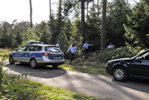 Die Polizei untersuchte den Tatort auf verwendbare Spuren und sperrte dafür das Waldstück ab (Bild). Ein Rettungswagen der Feuerwehr hatte zuvor die Lembeckerin von zu Hause abgeholt und sie zurück in den Wald gebracht, damit sie den Beamten den Tatort zeigen konnte. Anschließend wurde sie zur weiteren Versorgung ins Dorstener Krankenhaus gebracht.