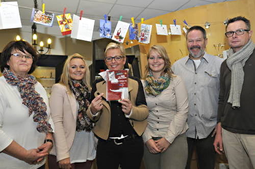 Stellten ihre Aktion vor (v. l.): Petra von Bracht (St. Barbara Gemeinde), Bettina Slodczyk (Salon Kopfsache Wulfen), Susanne Scholz-Plaumann (Optik Scholz), Jana Nonendorf und Roger Rommeswinkel (Provinzial Versicherung) und Wolfram Scholz (Optik Scholz).