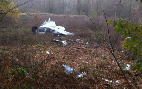 Der Unglücksort bot ein chaotisches Bild: Teile der Tragfläche hingen in den Bäumen, während der in zwei Teile zerbrochene Rumpf auf dem landwirtschaftlichen Gelände lag.