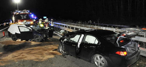Gelsenkirchen/Recklinghausen.Tödlicher Verkehrsunfall auf der A52 vor der Anschlussstelle Gelsenkirchen-Hassel. Am Sonntag Nachmittage (30. Dezember) gegen 17.30 Uhr starben bei einem schweren Verkehrsunfall zwei Menschen. Weil ein Recklinghäuser Autofahrer in in die falsche Richtung fuhr, rasten zwei PKW frontal aufeinander. Zwei weitere Personen wurden schwer verletzt. Die Autoinsassen wurden teils in den Wracks eingeklemmt und mussten von der Feuerwehr mit technischem Gerät herausgeholt werden. Drei Notärzte waren an der Unfallstelle im Einsatz.