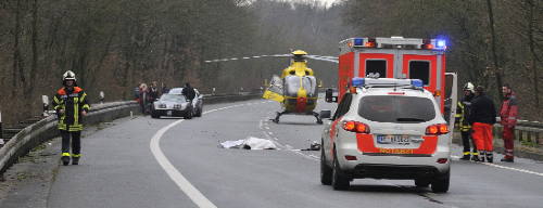 Haltern. Zu einem schweren Verkehrsunfall ist es am Sonntagnachmittag in Haltern am See gekommen. Dabei verunglückte der 50 Jahre alte Motorradfahrer aus Dortmund gegen 14.30 Uhr auf der Sythener Straße rund 500 Meter südöstlich der Lehmbrakener Straße. Rettungskräfte von Feuerwehr und Polizei waren schnell vor Ort, konnten aber nichts mehr für den Kradfahrer tun. Er erlag noch an der Unfallstelle seinen schweren Verletzungen. Auch ein Rettungshubschrauber war eingesetzt.