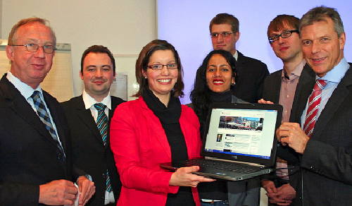 Bild: Sie präsentierten den neuen Internetauftritt der Stadt Recklinghausen der Öffentlichkeit (v.l.n.r.): Bürgermeister Wolfgang Pantförder, Christian Schwarz (GKD), Pressesprecherin Corinna Weiß, Sheila Patel (Pressestelle), Sören Kuhn (GKD), Sebastian Schürmann (Pressestelle) und Erster Beigeordneter Christoph Tesche.