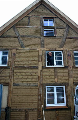Recklinghausen. Ein Schmuckstück nähert sich seiner Vollendung. Die Bauruine im Paulsörter, die Dr. Benedikt Große-Hovest vor einem halben Jahr – genau gesagt Ende Juli - in Angriff genommen hat (das Sonntagsblatt berichtete), sieht inzwischen sehr schmuck aus. Das Gerüst ist weg, Lehmziegel sind zu erkennen, das Dach ist gedeckt und die Fenster eingebaut. Sah es noch Ende September für das laienhafte Auge so aus, als hätte sich der Restaurator einem Fass ohne Boden entgegen gestemmt, bekommen er und seine Leute jetzt große Komplimente. Und Große-Hovest hat recht behalten. Schon im September war er zuversichtlich, das Kleinod im Paulsörter bereits Ende des letzten Jahres winterfest zu haben.
