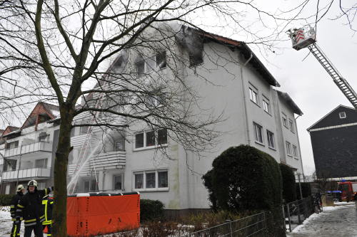 Das Feuer war am Sonntag gegen 15 Uhr aus noch nicht geklärter Ursache ausgebrochen. Als die ersten Einsatzkräfte den Brandort erreichten, schlugen die Flammen bereits aus dem Dachstuhl des Mehrfamilienhauses. Sofort wurde ein weiterer Löschzug mit einer Drehleiter aus Dorsten-Wulfen zur Einsatzstelle beordert. Dann spielten sich dramatische Szenen ab, als es hieß, dass sich noch zwei Personen in der Wohnung aufhielten. Von beiden gab es kein Lebenszeichen.