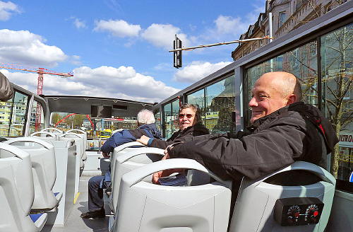 Vest. Ja, das gab es auch: Bei wunderschönem Wetter hat die erste Probe-Stadtrundfahrt durch Recklinghausen stattgefunden. Ab dem 9. April haben Kreisinteressierte die Chance, Rundfahrten durch das Vest und die Stadt Recklinghausen zu genießen. Mit einem modernen Doppelstock-Cabriobus können bei offenem Verdeck die Perlen der Region besucht und aus einer höheren Perspektive als üblich ganz neu entdeckt werden. Der Bus bietet auf der oberen Etage 53 Plätze und startet jeden zweiten Dienstag im Monat auf dem Rathausplatz in Recklinghausen seine Touren. Von April bis Oktober werden die Rundfahrten angeboten.