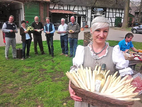 Vest. Endlich – der entbehrungsreiche Frühling ohne das königliche Gemüse ist vorbei. Die Rieder Bauern haben zusammen mit Spargelkönigin Bettina I. zum Angriff auf die edlen Stangen geblasen. Ab jetzt wird gestochen, was der Boden hergibt. Zusammen mit den Landwirten Willi Heine, Große-Streuer, Heiner Schulte Scherlebeck, Südfeld und dem Landschaftsgärtner Frantzen präsentierte sie den Spargel, der – wie immer in Top-Qualität – je nach Sortierung 7 bis 11 Euro pro Kilo kosten wird.