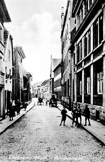 Bild: Die Ursula-Straße vor 100 Jahren mit dem Ursulinen-Kloster (rechts). Damals hieß die Straße noch „Blindestraße“ – was nichts mit Blinden zu tun hatte, sondern damit, dass die Straße damals keinen Anschluss zum Lippetor hatte (Sackgasse), also „blind“ war.