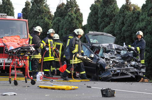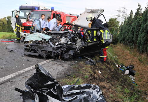 Dorsten. Zwischen Dorsten und Gelsenkirchen auf der B 224 ereignete sich heute ein schwerer Verkehrsunfall. Ein 73-Jähriger prallte frontal gegen einen entgegen kommenden LKW. Er musste von der Feuerwehr aus dem Autowrack herausgeschnitten werden. Lebensgefahr!
