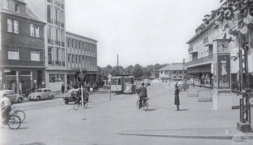 Bild: Ein Blick zurück: Die Bergstraße 1952, als noch die Straßenbahn hier fuhr.