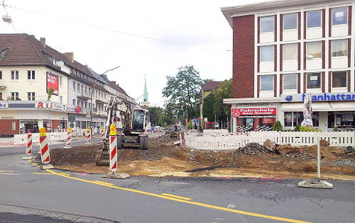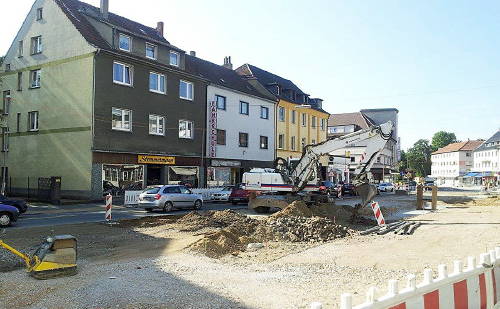 Das „Via Monte“ liegt am zweiten Bauabschnitt (bis zum Eingang Hülsstraße), der noch deutlich vor Weihnachten fertig wird (sagt der ZBH). Denn mit den Geschäftsleuten ist eine lange Pause vereinbart, damit das Weihnachtsgeschäft nicht durch Bauaktivitäten erstickt wird.
