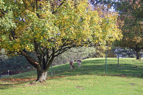 Vom Vordereingang des Hospitals nicht zu sehen, erstreckt sich dieses an der Rückseite des Krankenhauses. Entstanden ist das etwa 16.000 Quadratmeter umfassende Gehege schon in den Jahren 1983/84. In den nächsten Tagen ist es mit der goldenen Pracht allerdings nicht mehr weit her. Laut den Wetterfröschen wird es regnerisch und stürmisch und die Temperaturen sinken in einstellige Werte. Dann dürften die nervigen Laubbläser wohl ihrer Hochkonjunktur entgegen sehen. Foto: Cornelius