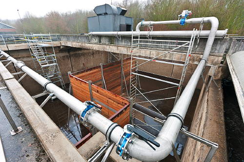 Bild: Die Belebungsbecken der Kläranlage Marl-Ost (Marler Straße, Hamm) während der Umbauphase.