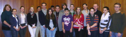 Marl. Die Schülervertreter von acht weiterführenden Schulen in Marl haben sich darauf verständigt, eine gemeinsame Stadtschülervertretung zu bilden. Das ist das Ergebnis eines gemeinsamen Gesprächs mit Bürgermeister Werner Arndt. Er hatte die Schülervertretungen aller weiterführenden Schulen zum Dialog ins Rathaus eingeladen. „Die Schüler haben einen Sponsorenlauf für einen guten Zweck vorgeschlagen, an dem sich die weiterführenden Schulen beteiligen“, freut sich Arndt über die erste Anregung für ein konkretes gemeinsames Projekt. Der Bürgermeister möchte sich in Zukunft jährlich mit den Vertretern der Marler Schüler zum Dialog treffen.