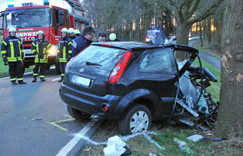 Dorsten/Haltern. Bei einem schweren Verkehrsunfall in Dorsten-Lembeck erlitt ein 19-jähriger Pkw Fahrer aus Haltern schwerste Verletzungen. Sein Fahrzeug wurde völlig zerstört. An gleicher Stelle war es vor fast genau fünf Jahren, am 9. Januar 2009, zu einem ähnlichen Unfall gekommen. Am selben Baum zerschellte damals ein Citroen C3. Der Pkw Fahrer aus Dorsten starb an der Unfallstelle.