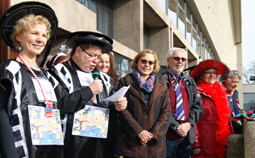 Bei Berlinern, belegten Broten, Bier und Sekt feierten die Narren kräftig ihren Sieg. Eine Choreografie der Sternburger Tanzgarde, komödiantische Beiträge der Karne-vals- und Heimatvereine und Witze vom Karnevals-Urgestein Hanno Hiller sorgten für ausgelassene Stimmung. Mit Erinnerungsorden ehrte Bürgermeister Werner Arndt die Vertreter der Vereine. Ihre Freude über den erfolgreichen Rathaussturm hielt noch lange an: „Sternburger Helau und Colonia Alaaf, den Läks de Biekern und der Stadt Marl ein herzliches Helau!“