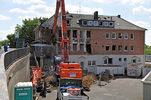 Mit Werbung hatte es die Dorstener Kaffee-Rösterei Tempelmann (Pliesterbecker Straße) nicht so sehr. Es gab nur einmal den auffallenden Schriftzug an einem Wohnhaus nahe der Lippe (aus Richtung Gemeindedreieck). Jetzt ist die Werbung weg und mit ihr das ganze Haus. Als in den 60er Jahren das hohe Haus errichtet wurde, beherbergte es noch eine Nachtbar mit zweifelhaftem Ruf. Doch im Laufe der Zeit zogen die Mieter aus, stattdessen kamen Einbrecher, Vandalen und Brandstifter. Mit großem Aufwand musste der Bau gesichert werden. Jetzt verschwindet er komplett.
