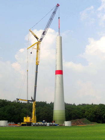 Bild: Der Betonturm der neuen Windanlage in Sinsen steht schon, in drei Monaten werden die Rotorblätter montiert.