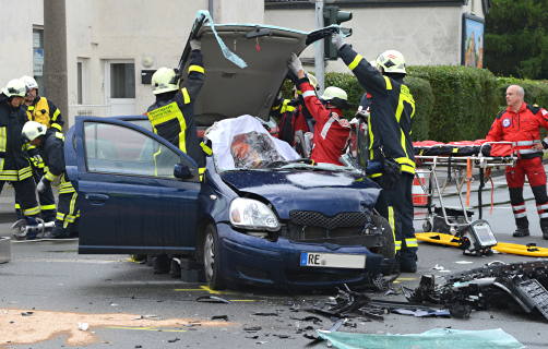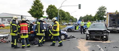 Am späten Dienstagnachmittag kollidierten im Kreuzungsbereich Bochumer-/Händelstraße in Dorsten zwei Pkws. In der Folge war die Kreuzung längere Zeit voll gesperrt. Die Feuerwehr schnitt das Autodach des Dorsteners ab, um den Fahrer daraus zu befreien. Ein Rettungshubschrauber flog den schwer verletzten Mann zum Bergmannsheil in Bochum, eine Klinik, die auf die Versorgung von Unfallopfern spezialisiert ist.