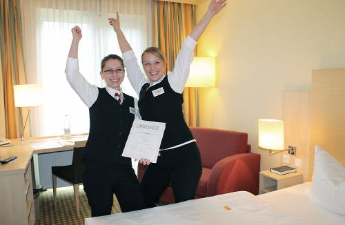 Sarah Kunkel ist die Beste von allen Hotelfachfrauen, die im Kreis Recklinghausen jüngst ihre Prüfung abgelegt haben. Die 22-Jährige absolvierte ihre dreijährige Ausbildung im Feierabendhaus von Hüls Service. Die Belohnung: eine halbjährigen Übernahme, so dass die Hotelfachfrau bis zum Jahresende weiterhin an der Rezeption zu sehen ist. „Mit diesem Ergebnis wird Sarah keine Probleme bei der Jobsuche haben“, ist Pamela Kaufmann überzeugt.