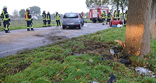 Nach Angaben der Polizei befuhr der junge Mann am Samstag gegen 16.30 Uhr die B 58 von Schermbeck in Fahrtrichtung Wesel. In Höhe Schermbeck-Damm geriet sein Fahrzeug aus noch ungeklärtem Grund nach rechts von der Fahrbahn ab und krachte mit hoher Geschwindigkeit gegen einen Baum. Das Fahrzeug wurde durch die Wucht des Aufpralls zurück auf die Fahrbahn geschleudert.