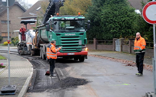 Dorsten. Aktuell ist die Kahlstraße in Dorsten-Wulfen zwischen der Dülmener Straße und der Einmündung Hessenweg aufgrund einer Fahrbahnsanierung komplett gesperrt worden. Bereits am Mittwochmorgen rückte schweres Gerät an, um die alte Asphaltdecke abzufräsen. Bereits vor zwei Jahren wurde ein anderes Teilstück der Straße ausgebessert. Anwohner hatten sich beschwert, dass diese Straße mit zu den schlechtesten in Wulfen gehöre. Foto: Bludau