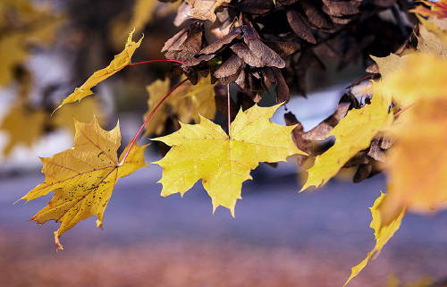 Bild: Schön aber gefährlich: Nasses Herbstlaub kann Bürgersteige schnell in rutschige Flächen verwandeln. Foto: HUK-Coburg