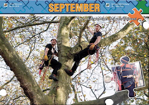 Die Monatsblätter sind – nach einer Idee von Stadtgrafiker Robert Lemke – wie Puzzle gestaltet. Sie zeigen die Beschäftigten an ihren Einsatzorten.