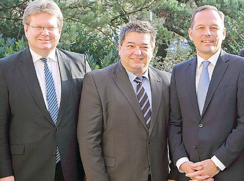 Bild: Die „Marler Lösung“ ist unterzeichnet: Bürgermeister Werner Arndt umrahmt von Dr. Arndt Neuhaus (l.) und Thomas Wessel (r.).