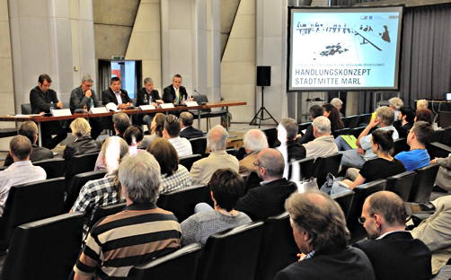 Bild: Lebhafte Diskussion über die Zukunft der Marler Stadtmitte im Rathaussaal. Foto: R. Deinl