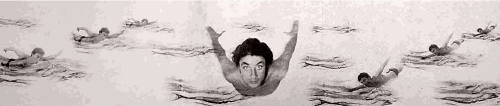 Als vor 51 Jahren, am 5. Juli 1964, der acht Millionen Mark teure imposante Glasbau eröffnet wurde, gehörte die „Fotografische Wandkomposition“ des in Marl arbeitenden ungarischen Fotografen Ivan Köves zum Blickfang: 8 m lang und 1,60 m hoch zeigte es den Pantomimen Samy Molcho in verschiedenen Schwimm-Positionen. Anders als die Plastik „Große Badende“ von Emilio Greco vor dem Bad ist das Foto fest mit dem Gebäude verbunden. Seit der Schließung des Bades 2001 konnten es nur ungebeten „Gäste“ sehen. Und die machten sich an die Zerstörung. Inzwischen ist es nicht mehr zu retten – aber das Negativ gibt es noch.