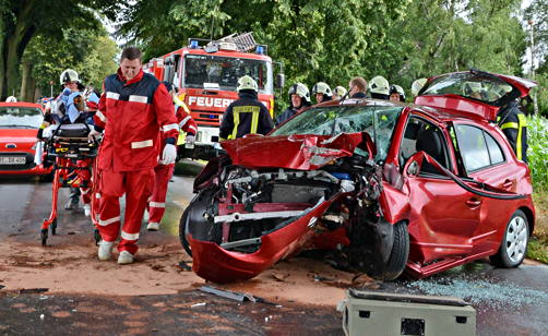 Dorsten. Am Samstag befuhr gegen 13.20 Uhr ein 71-jähriger Duisburger mit seinem PKW die Rhader Straße in Fahrtrichtung Dorsten-Lembeck. Kurz vor dem Ortseingang verlor der Fahrer auf gerader Strecke aus bislang unbekannten Gründen die Kontrolle über seinen Nissan. Das Fahrzeug kam links von der Fahrbahn ab und prallte ungebremst gegen einen Baum. Sowohl der Fahrer als auch die 96-jährige Beifahrerin konnten von Unfallzeugen noch vor dem Eintreffen der alarmierten Feuerwehr befreit werden. Beide Unfallopfer wurden schwer verletzt.