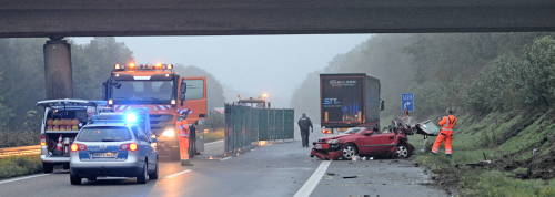 Schermbeck. Ein getöteter 18-Jähriger und drei Schwerverletzte im Alter von 20, 22 und 26 Jahren sind die Bilanz des Verkehrsunfalls auf der A 31 (unsere Meldung von heute Vormittag).
