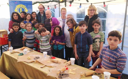 Marl. Mehr als 40 Kinder zwischen drei und 14 Jahren backten im Weihnachtszelt auf der Terrasse vom Café Tudyka Weihnachtskekse. Unter ihnen waren 20 Flüchtlingskinder aus fünf Nationen u.a. Syrien, Persien und Afghanistan. Möglich gemacht hatte dies der Lionsclub Marl, der die Kosten für Zutaten, Getränke und die Nikolaustüten für die Flüchtlingskinder übernahm.