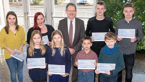 Ein Instrumentenstipendium erhielten Jule Isabel Williams (Geige, Dorsten), Franziska Burchardt (Cello, Oer-Erkenschwick) und Lara Katharina Behling (Gesang, Gelsenkirchen), ausgezeichnete Jungs waren Ramin Nashir (Klavier, Dorsten), Tobias Christian Iwanczik (Querflöte, Gelsenkirchen) und Anatholy Tizian Moseler (Geige, Datteln) sowie die Gladbecker Daniel Lejtner (Mandoline) und Noah Grabowski (Mandola), für besondere Ensembleleistungen geehrt wurden die beiden Harfinistinnen Swantje Tapper und Lena Wacke (Bottrop).
