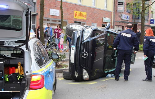 Die Frau wurde dabei leicht verletzt. Ihr neunjähriger Sohn, der mit im Auto saß, blieb unverletzt. Zwei Löschzüge der Feuerwehr sicherten die Unfallstelle zwischen der Martin-Luther- und der Borkener Straße. Für die Bergung war die Straße am frühen Abend längere Zeit voll-, später noch halbseitig gesperrt.