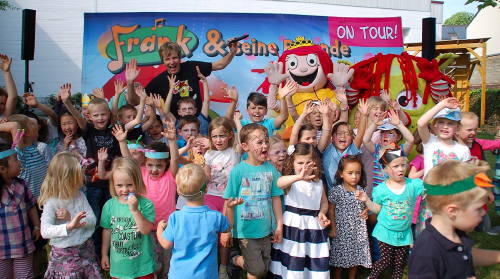 Neben Spieleaktionen, Kinderschminken, Leckereien vom Grill sowie viele selbstgebackene Muffins sorgte ein Highlight am Nachmittag für stahlende Kinderaugen. Die Mitmach-Show von „Frank und seine Freunde“ mit dem Zappeltier und Prinzessin Mikidoo. Bereits im Vorfeld haben die Kindergartenkids die Hits vom Zappeltier einstudiert und konnten so lautstark bei „Tip-Top“ oder „Das Lied von den Wölfen“ mitsingen.