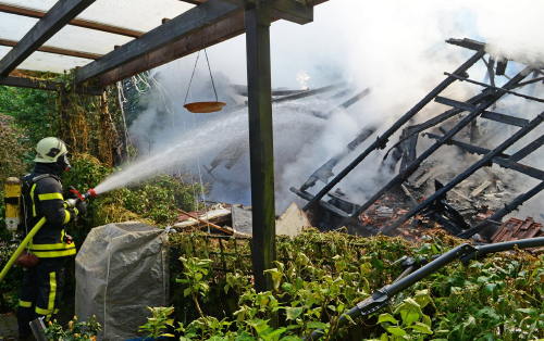 Der Bewohner des abgebrannten Hauses waren nicht zu Hause. Das benachbarte Wohnhaus konnten die Einsatzkräfte vor den Flammen schützen. Die Polizei hat die Brandruine beschlagnahmt und Ermittlungen zur Brandursache aufgenommen.