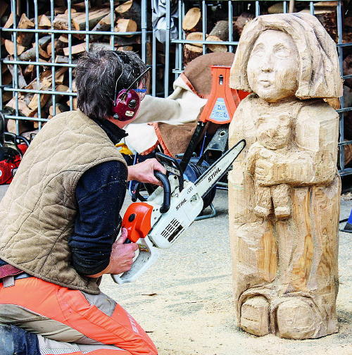 Das englische Verb „carve“ bedeutet schnitzen, doch statt des Messers benutzen die „Carving Cup“-Teilnehmer eine Motorsäge und formen aus den Holzstämmen abstrakte und realistische Figuren. Diese werden später entlang der geplanten Waldpromenade in der Haard aufgestellt.