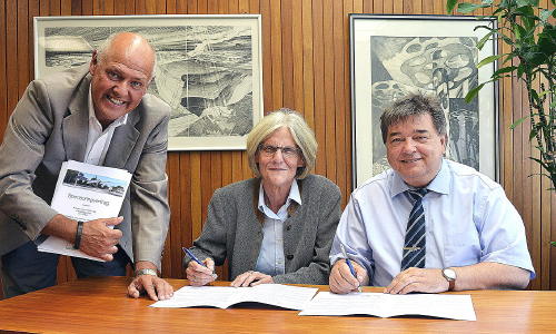 Bild: Bürgermeister Werner Arndt und Margareta Kulmann-Rohkemper unterschrieben den Sponsoringvertrag, links ZBH-Chef Michael Lauche.