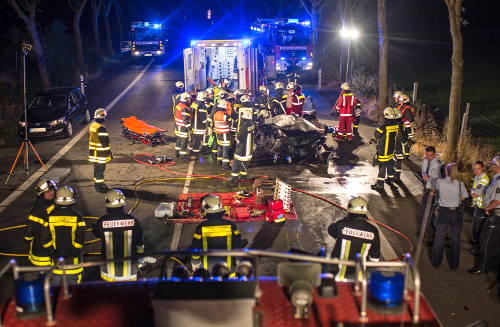 Gegen 19.40 Uhr wurden die Kräfte der hauptamtlichen Wache, des Löschzuges Wulfen und der Rettungsdienste aus Dorsten, Haltern am See und Marl zum „Marler Damm“ alarmiert. Ein Pkw, mit zwei 21-jährigen Frauen und einem vierjährigen Jungen besetzt, war von der Fahrbahn abgekommen und vor einen am Straßenrand stehenden Baum geprallt. Dabei wurde die Beifahrerin so schwer im Fahrzeug eingeklemmt, dass sie von den Einsatzkräften mit hydraulischem Rettungsgerät befreit werden musste.