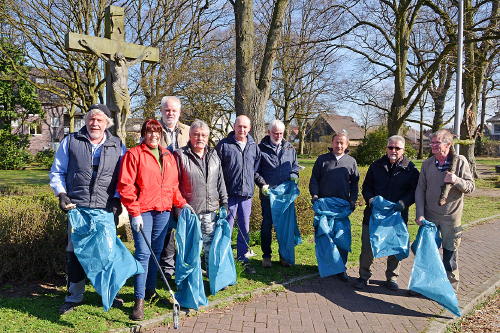 Dorsten. Bei strahlendem Sonnenschein beteiligte sich auch der Heimatverein Wulfen an den diesjährigen Dorstener Besentagen. Am Donnerstag wurde mit einer rund zehn Mann und Frau starken Truppe Grünanlagen im Ortsteil gereinigt. Gefunden wurde innerhalb kürzester Zeit ein ganzer Anhänger voll Unrat. „Es ist schon erschreckend, wie viel Müll achtlos in die Natur entsorgt wird“, ärgert sich Johannes Krümpel, der Vorsitzende des Heimatvereins. Foto: Bludau