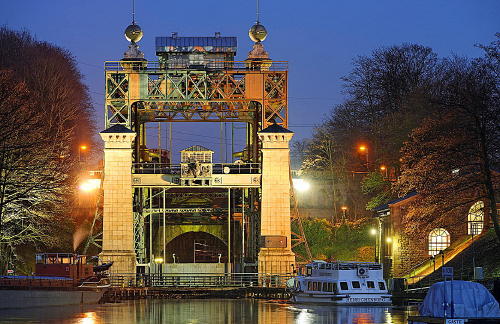 Bild: Auch am Schiffshebewerk geht am Samstagabend zur „Earth Hour“ das Licht aus. Foto: LWL / Hudemann
